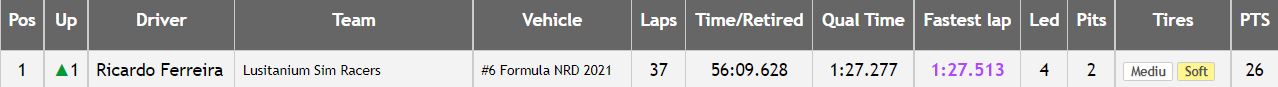 1º Ricardo F. Lusitanium Sim Racers > 56:09.628