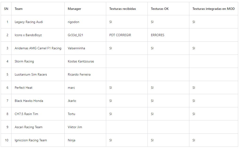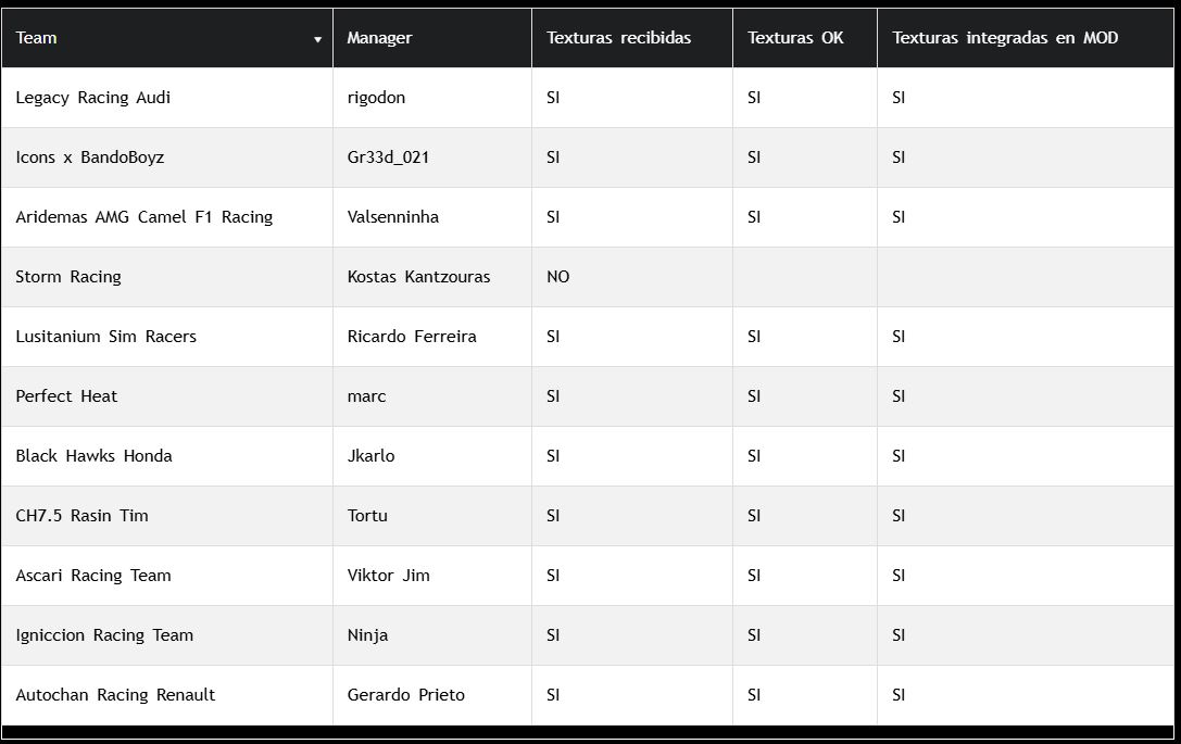 Ya tenemos todos los equipos con sus texturas correctas, si hay que hacer alguna corrección en el futuro, me decís.