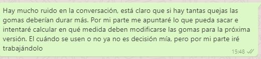 1 - Se han recibido comentarios negativos sobre la poca duración de los neumáticos y se han apuntado las opiniones válidas, como por ejemplo, las siguientes: